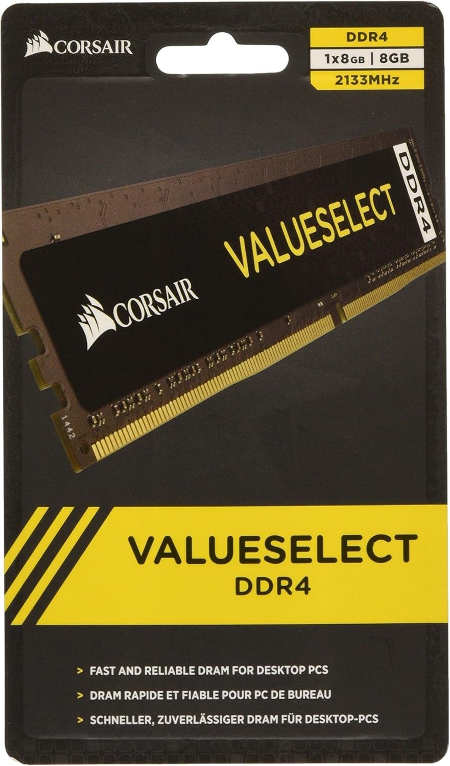 - Item: Módulo de memória Corsair ValueSelect 8GB DDR4 2133MHz — 1 unidade; módulo de memória de 8GB, formato DIMM 288 pinos.