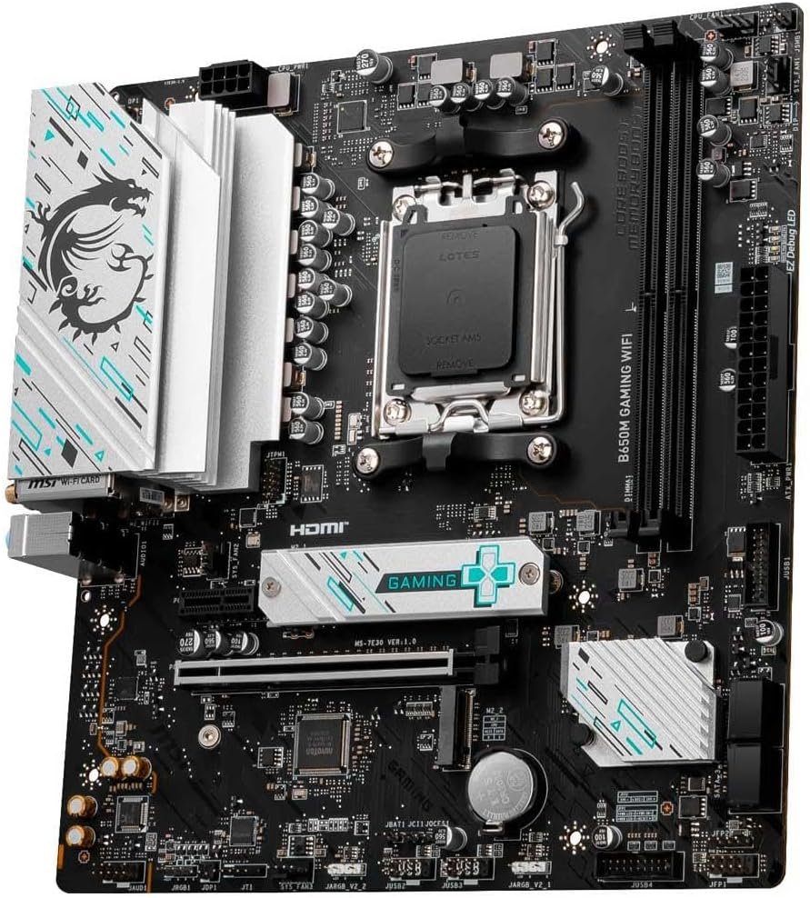 O MSI B650M GAMING WIFI é uma placa-mãe micro-ATX projetada para processadores AMD Ryzen da série 7000, oferecendo suporte a memória DDR5, PCIe 4.0 x16 e conectividade Wi-Fi 6E. Ideal para gamers e entusiastas que buscam desempenho sólido e recursos avançados em um formato compacto. Para mais detalhes, consulte a página oficial da MSI.